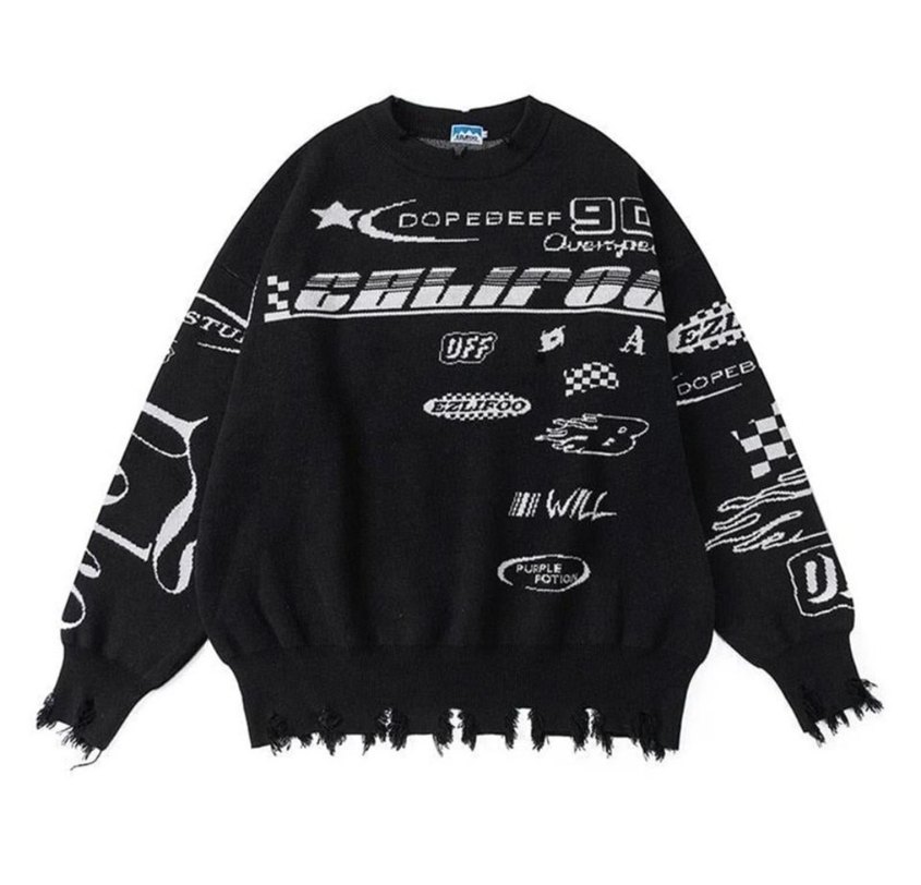 Siyah Baskılı Örme Kadın Kazak