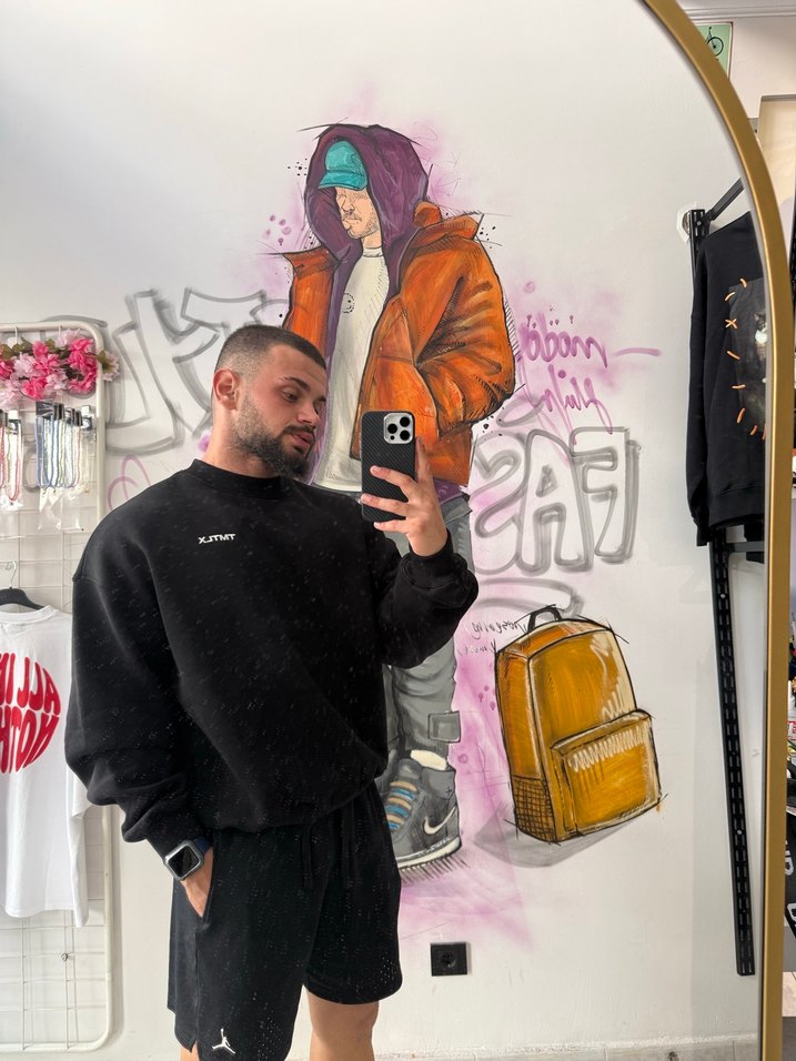 Siyah baskılı, uzun kollu, oversize kesim erkek sweatshirt. İçi şardonlu. L-XL-3XL BEDENLERİ MEVCUT