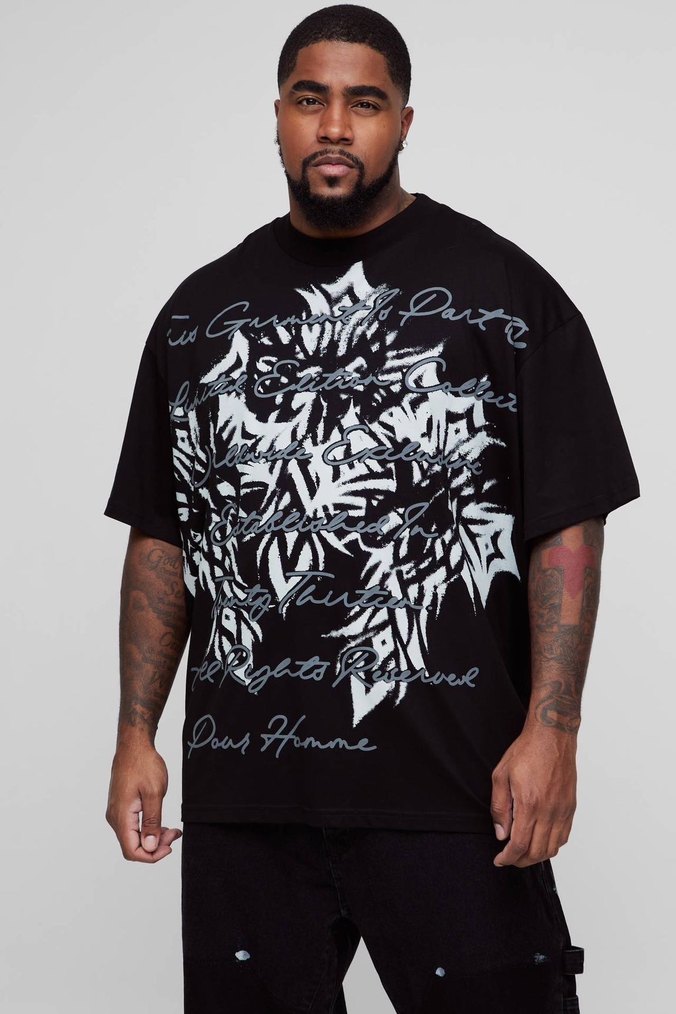 BoohooMAN marka Siyah denim kumaştan, kısa kollu ve yuvarlak yaka oversize kesim tişört. Baskılı desenleriyle tarzına uygun, günlük kullanıma elverişli.