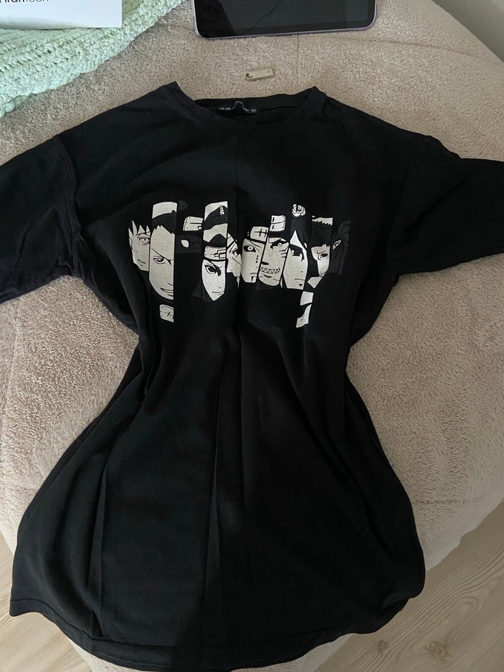 Siyah Baskılı Pamuklu kısa Kollu Tişört animeli