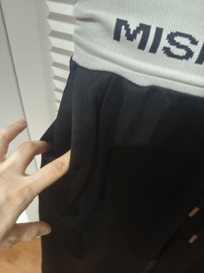 Siyah baskılı, fermuarlı ve sentetik kumaştan üretilmiş, normal boy midi hamile eteği. Günlük şık ve athleisure tarzına uygundur.