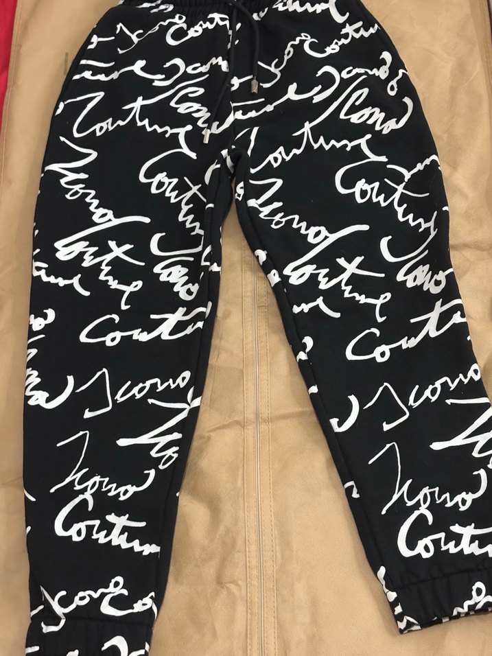 Siyah renkli, beyaz baskılı yazı desenli, rahat kesim kadın eşofman altı. Yumuşak sentetik kumaştan, lastikli bel ve uzun paçalıdır.