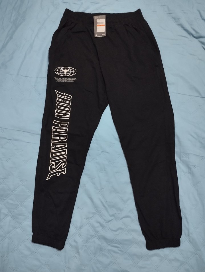 Siyah baskılı, bol kesim ve normal boyda, sentetik kumaştan yapılmış, fermuarlı cepler içeren eşofman altı. Spor ve günlük kullanım için uygundur.