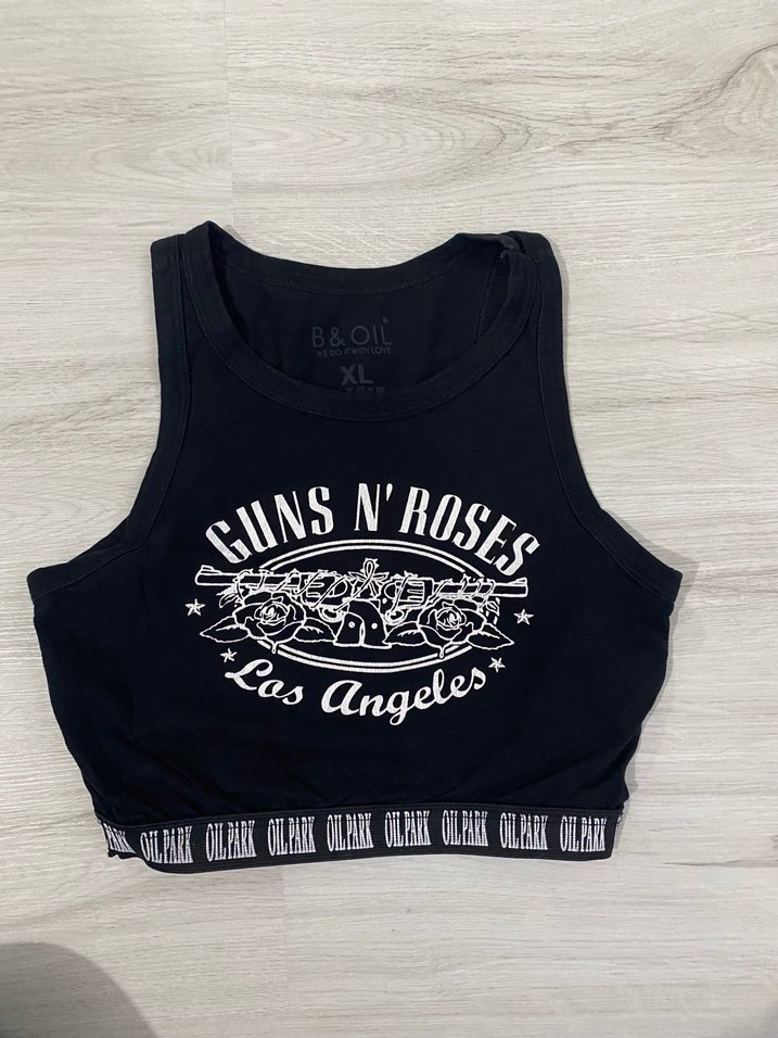 Siyah baskılı, kolsuz ve fitted kesim crop top, rock punk tarzı için denim görünümlü kumaştan üretilmiştir. Spor ve biker stillerine uygundur.