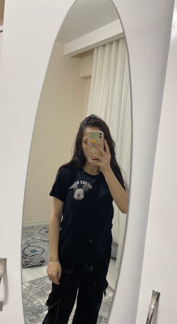 Siyah pamuk tişört, bol kesim, kısa kollu ve yuvarlak yakalıdır. Baskılı deseniyle rock punk havası verir, rahat ve günlük kullanıma uygundur.