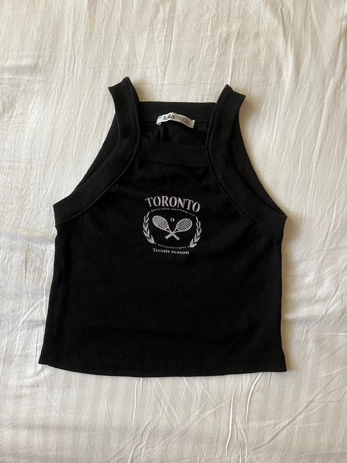 Siyah Baskılı Spor halter yaka crop