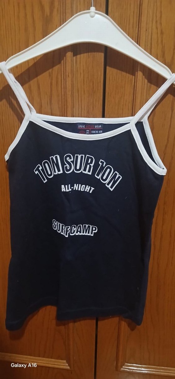 Siyah pamuklu, beyaz detaylı, baskılı, askılı, fitted kız çocuk atlet. Mini boyda, spor ve sokak modasına uygun.