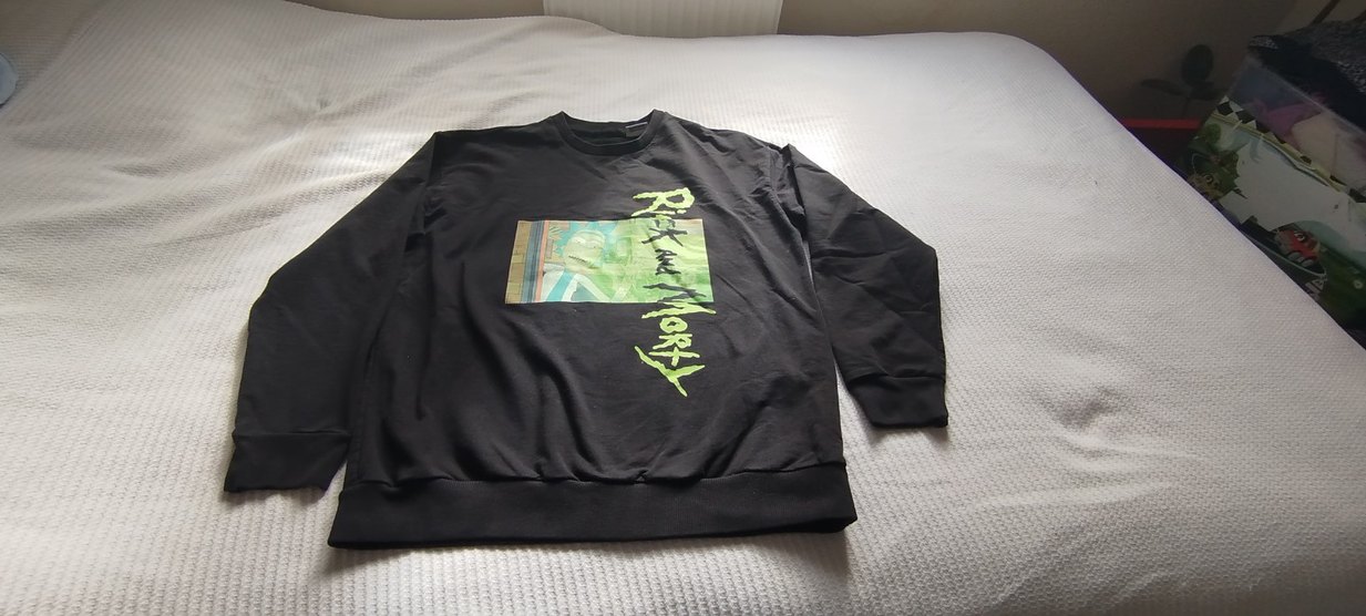 Siyah baskılı, yuvarlak yaka ve uzun kollu sweatshirt. salaş kesim ve normal uzunlukta, günlük sokak stili için uygun. çok önemsiz bir ikili kesi var belli bile olmuyor fiyat uygun