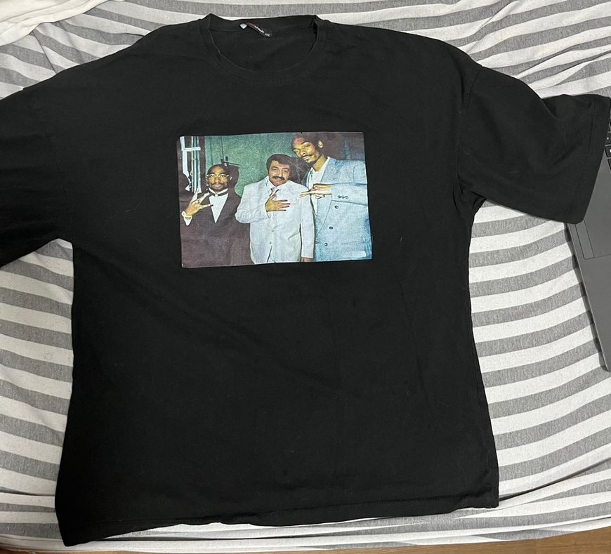 Siyah tişört, önünde baskılı görselle. Kısa kollu, yuvarlak yaka, regular fit ve pamuklu yumuşak kumaştan. Sokak stiline uygun. XXL BASKILI TSHİRT ÖLÇÜLER en:56 boy:70 BASKI ÖLÇÜSÜ en:26.5 boy:18.5