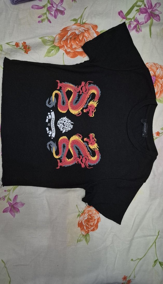 Siyah Baskılı Tişört S beden crop tarzı
