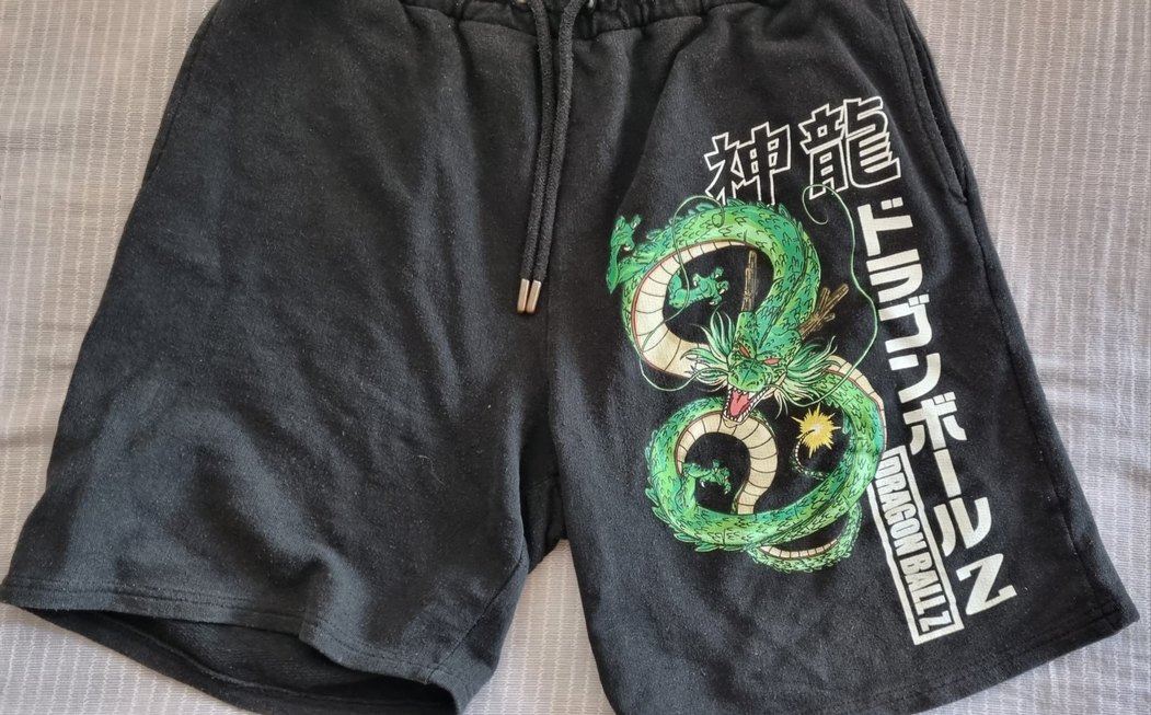 Siyah, bol kesim unisex sweatpants. Yeşil ejderha baskısı ve fermuarlı cepler bulunur. Yumuşak pamuklu kumaştan, rahat sokak stili için. xs s m bedene uygun. dragon ball z şort