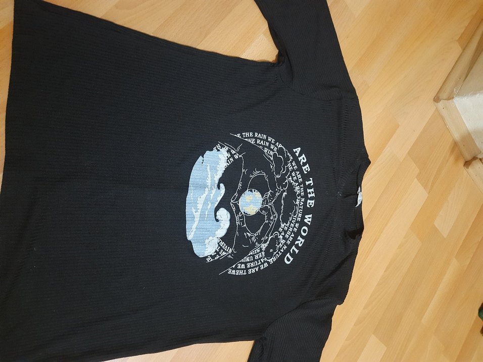 Siyah renkli, baskılı, uzun kollu, normal midi boyda, yumuşak ve sıcak kumaştan yapılmış, fitted kesim hamile tişörtü. Günlük kullanıma uygundur, gotik punk tarzı yansıtır.