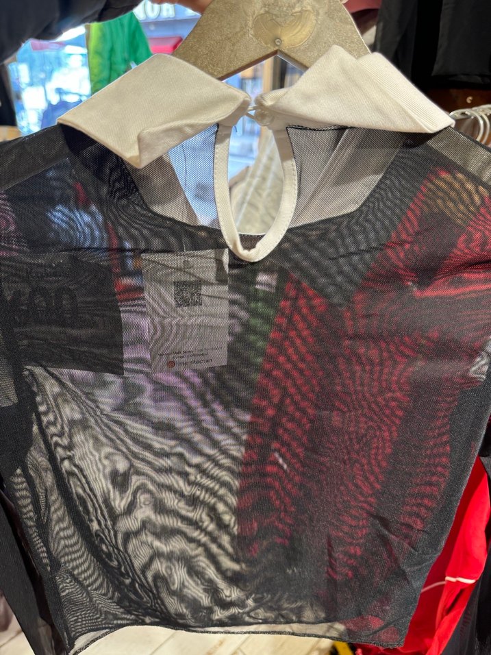 Baskılı desenli, siyah renkli, uzun kollu ve yakalı, yapışkan bant detaylı, sokak tarzı kadın bluz.