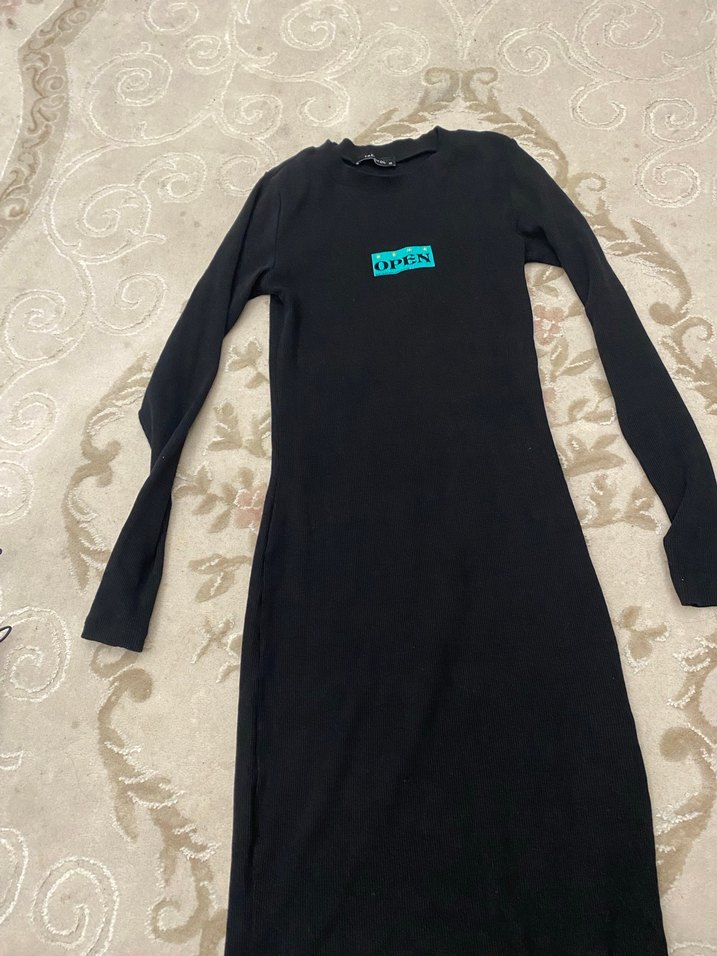 Siyah Baskılı Uzun Kollu Kadın Elbise