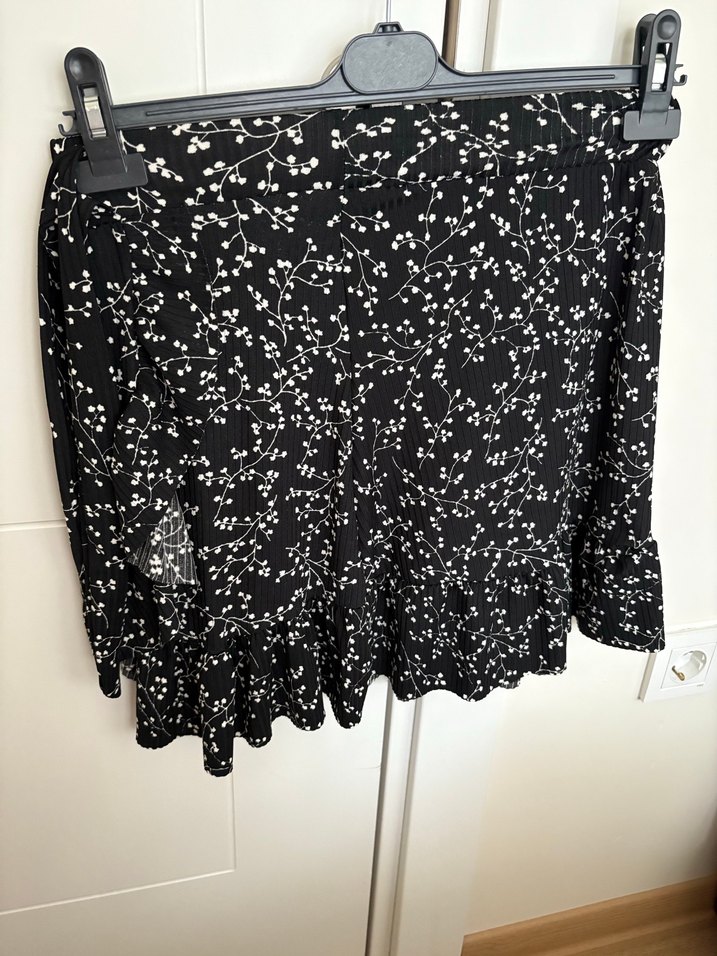 Siyah Baskılı Volanlı Mini Etek