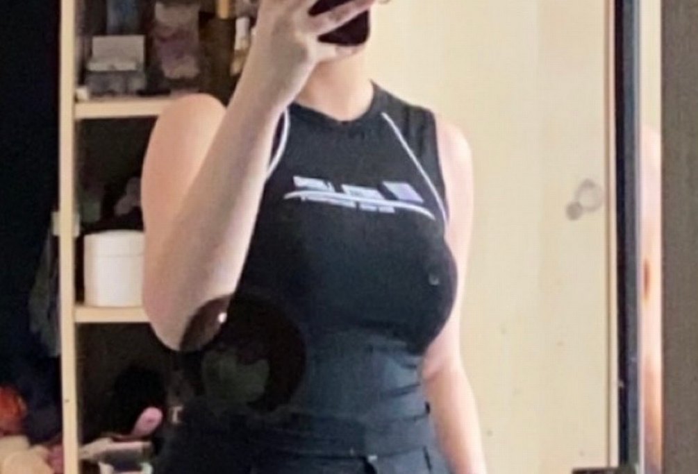 Siyah renkli, yüksek yakalı ve baskılı desenli, kolsuz ve vücuda oturan normal midi uzunluğunda atlet.