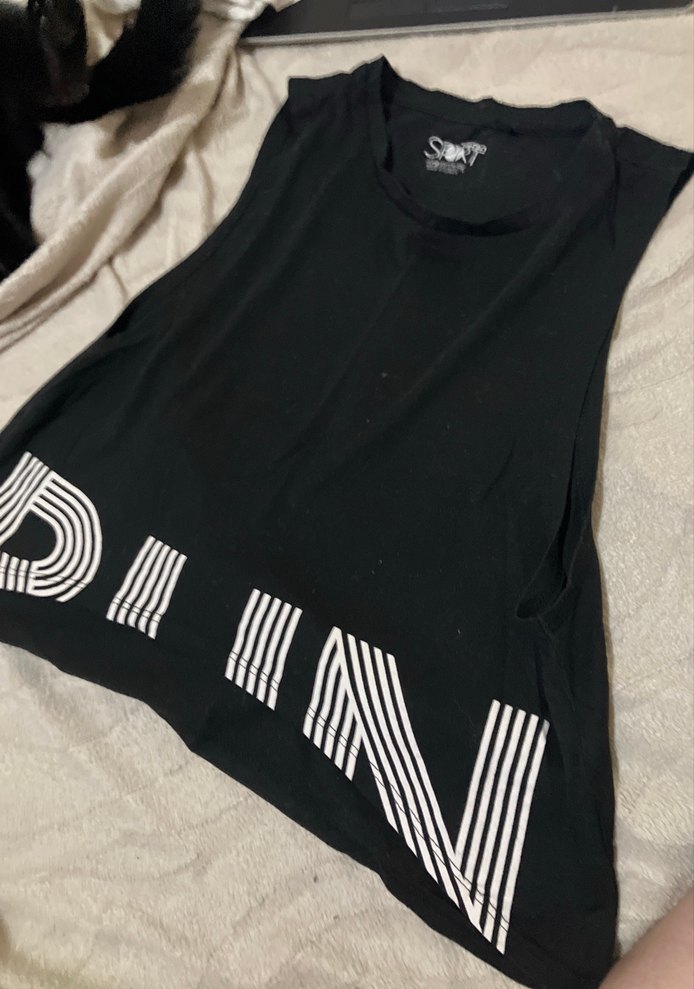 Yüksek yakalı, siyah renkli ve pamuklu kumaştan yapılmış, salaş kesimli, baskılı kadın atlet. Spor ve günlük rahat kombinlere uygundur.