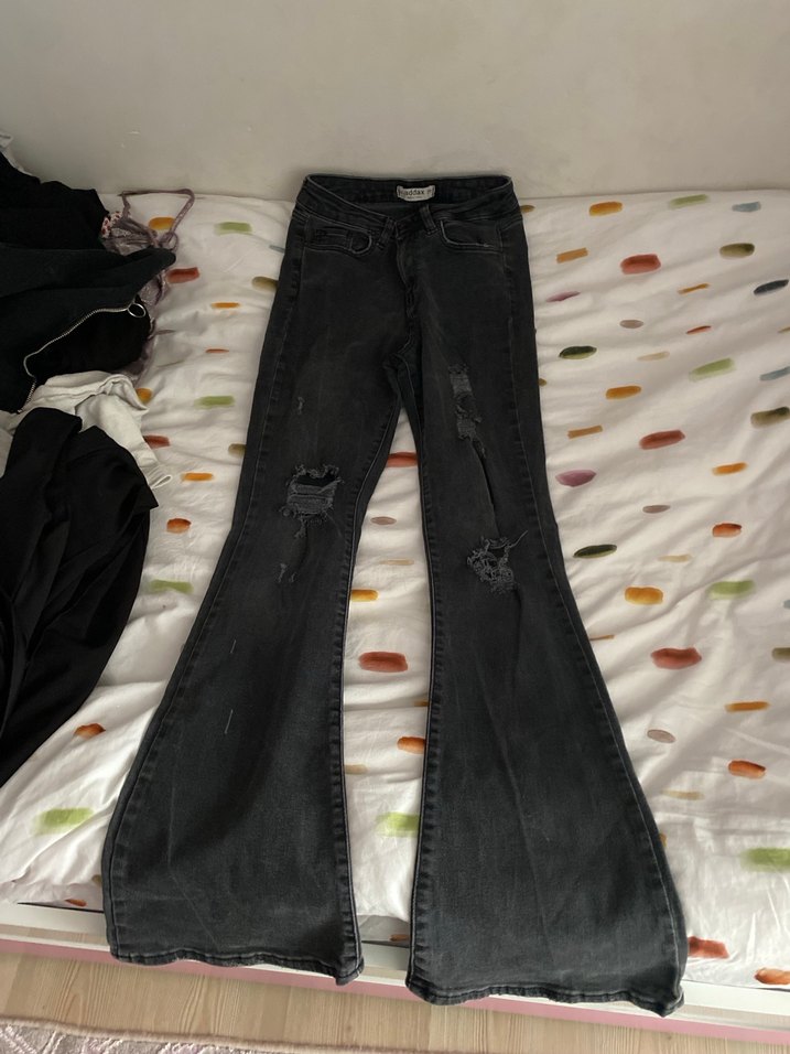 Siyah Batik Desenli Bol Kesim Kadın Kot Pantolon