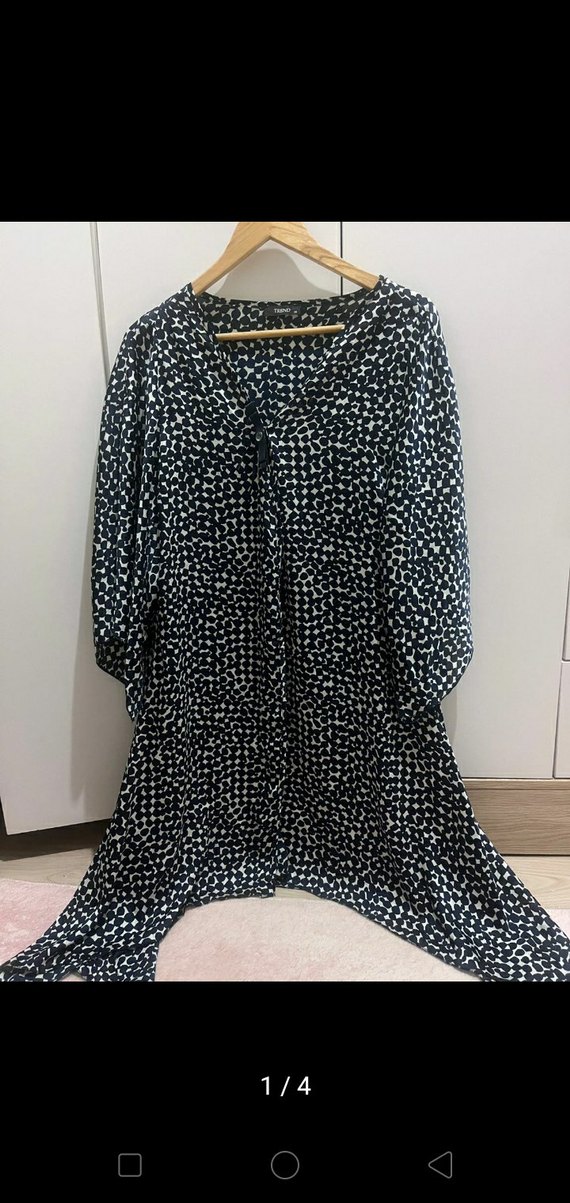 lacivert renkte, uzun kollu, batik desenli salaş kesim kadın kimono gömlek bohem ve minimalist tarz sunar.