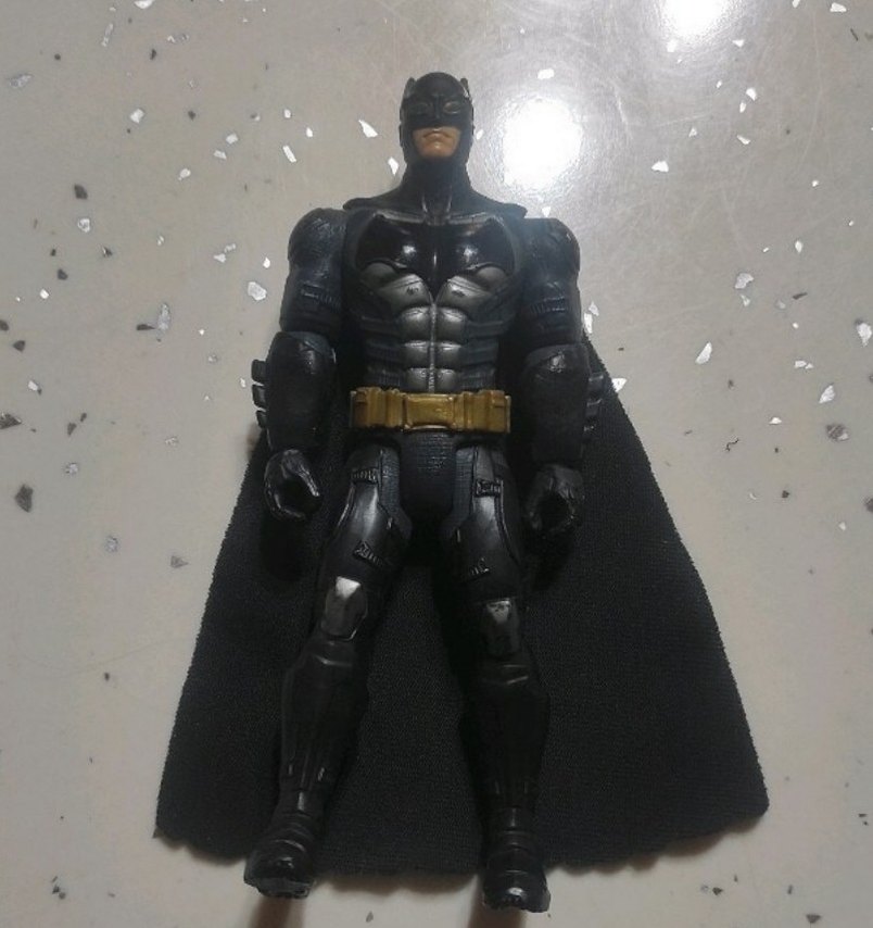 Bu siyah Batman aksiyon figürü, detaylı zırh ve kumaş pelerin ile karakterin karanlık havasını yansıtıyor.