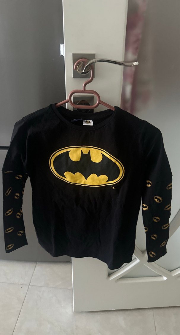Siyah renkli, baskılı Batman logosu ve düğmeli uzun kollu, dar kesim erkek sweatshirtü. Sokak stili ve rock punk havası sunar.