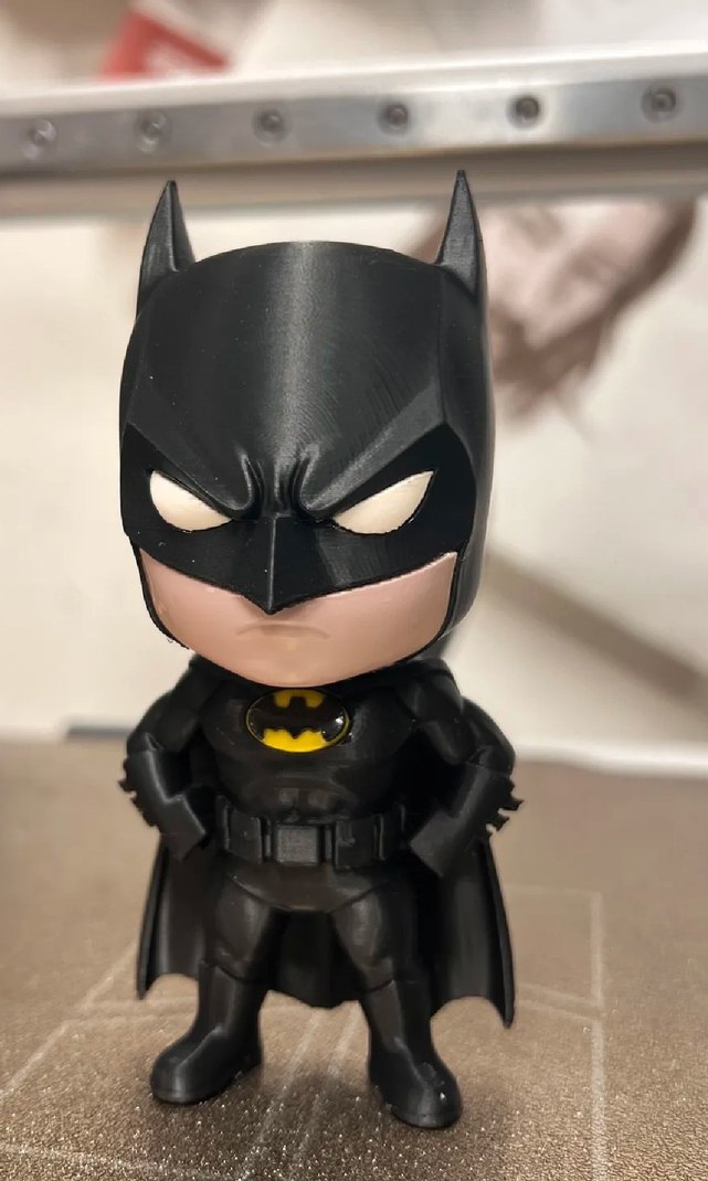 Siyah renkli Batman figürü, detaylı maske ve pelerin ile karakterin ikonik görünümünü yansıtıyor.