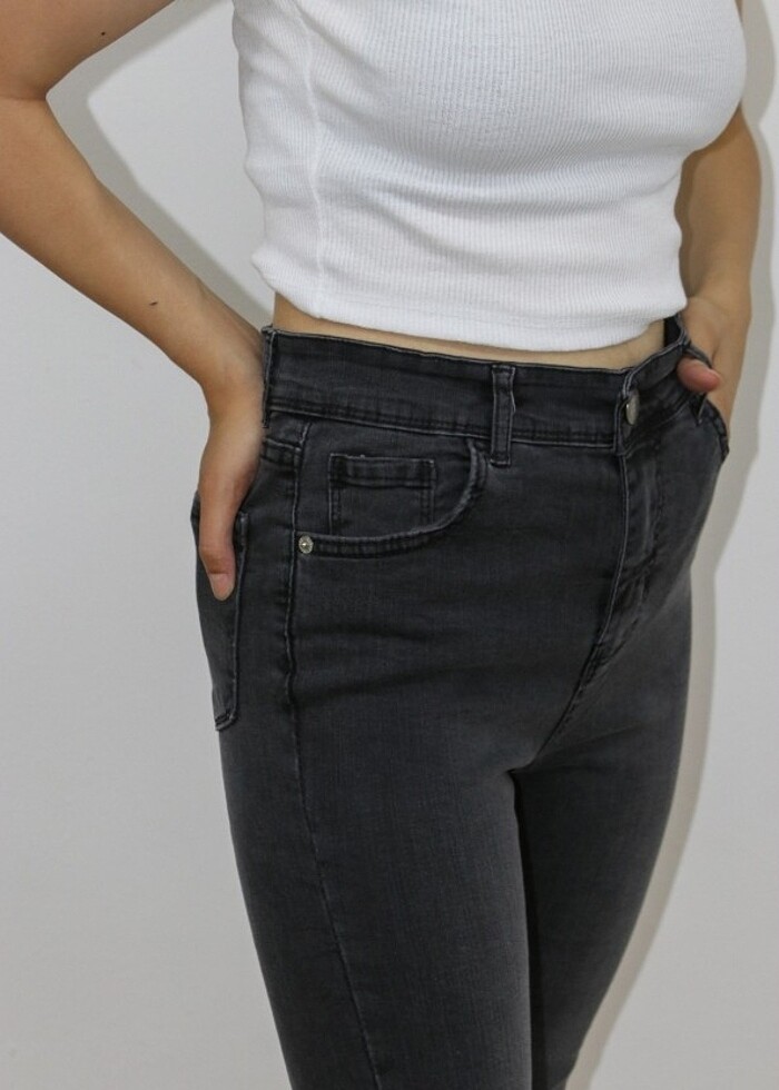 Yeni Siyah Bayan Kot Pantolon Dar Paça Likralı