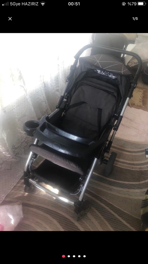 Dayanıklı çerçeveli, ayarlanabilir oturma yerli siyah bebek arabası. Bebek ve ebeveyn için konfor ve kullanım kolaylığı sağlar.