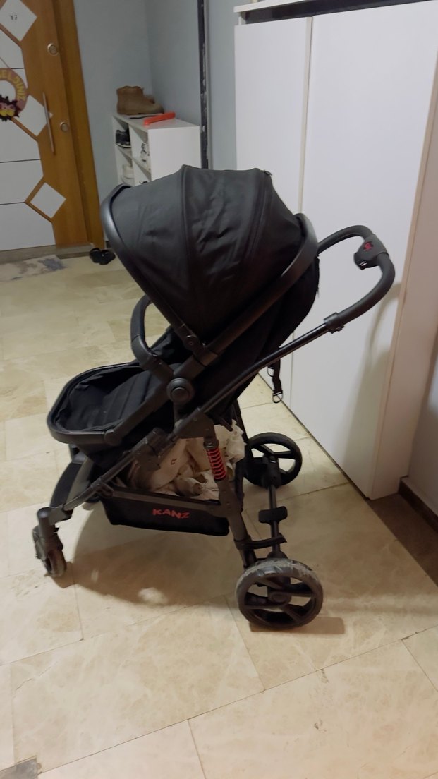 Siyah bebek arabası, tente ve alt kısımda saklama sepeti ile donatılmıştır. Dayanıklı tekerlekleri ve rahat tutma sapı bulunur. Üst fermuarlı örtüsü yoktur