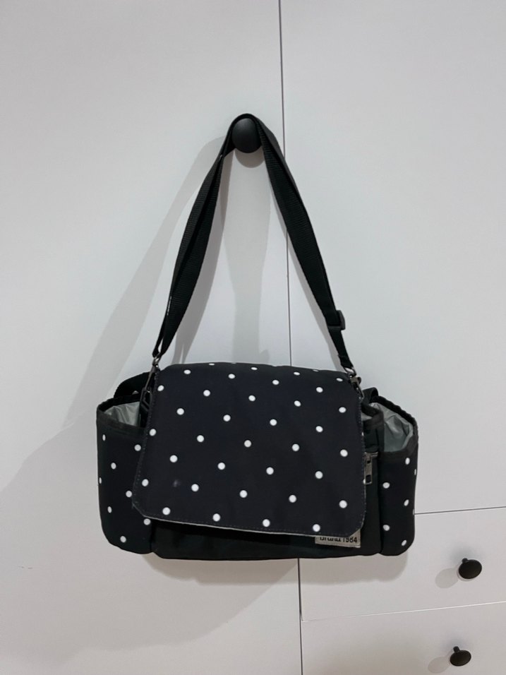 Siyah puantiyeli çıkarılabilir organizer çanta fazladan olduğu için çok kullanılmadı