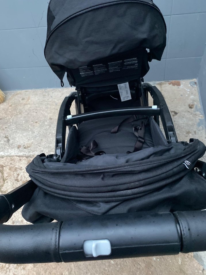 Siyah bebek arabası, koruyucu tente ve güvenlik kemeri ile katlanabilir tasarıma sahiptir ürün e bebekten alındı 1 kere kullanıldı sıfırdan farkı yok kızım binmediği icin satıyorum kutusu garanti belgesi yağmurluğu hepsi vardır