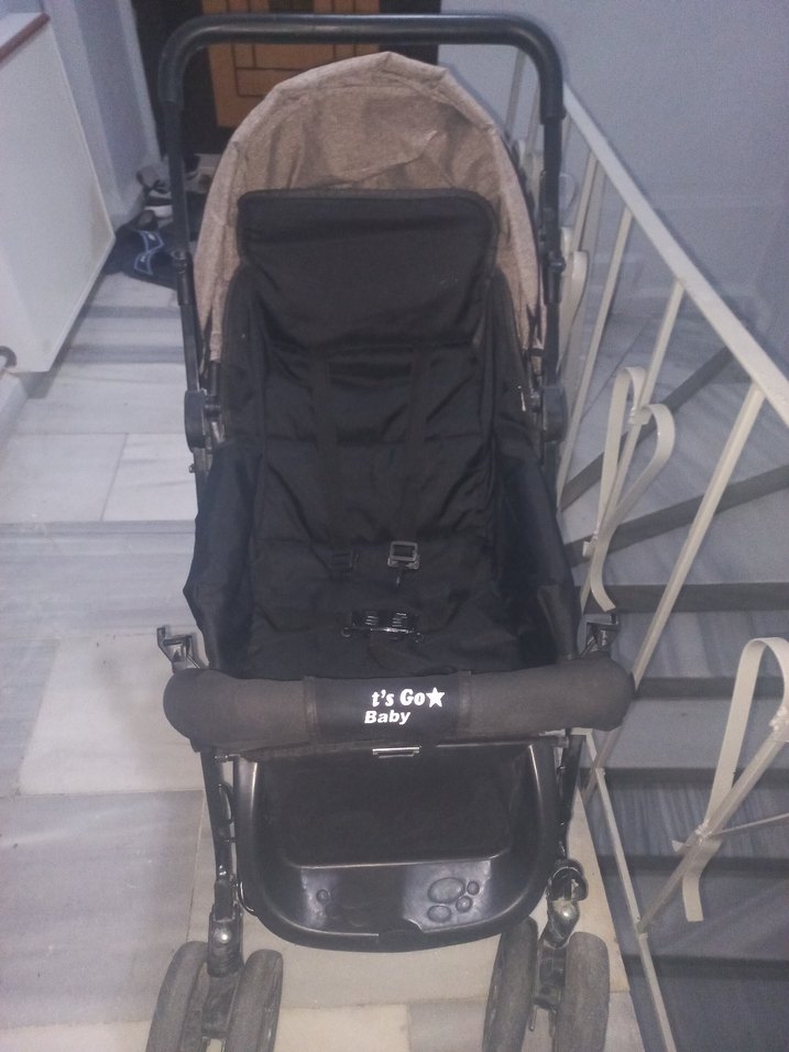 Katlanabilir tasarıma sahip siyah bebek arabası, konforlu oturma yeri ve güvenlik kemeri ile donatılmıştır. Sağlam iskelet ve kolay hareket eden tekerlekleri bulunur. elden teslim alabilecek olanlar yazsın lütfen