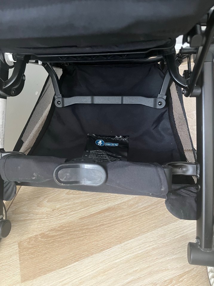 Siyah bebek arabasının altında geniş ve sağlam bir saklama sepeti bulunur, gezilerde eşyalarınızı taşımak için uygundur.bagaj boy pratik katlanan