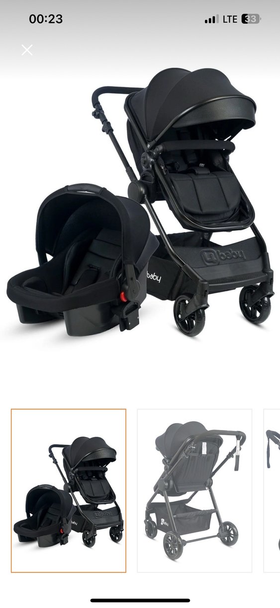 6 ay kullanıldı temiz üründür.Ayarlanabilir tente ve güvenli kemerli siyah bebek arabası ve oto koltuğu seti. Yeni doğan ve küçük çocuklar için uygundur.