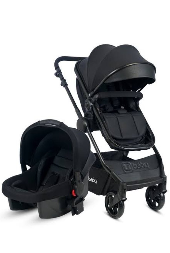 Daha sonra tekrar foto eklenecek Koruyucu tente ve sağlam tekerleklere sahip siyah bebek arabası ve uyumlu taşıma koltuğu. 0-3 yaş arası maksimum 15 kiloya kadar taşır çok iyi durumda