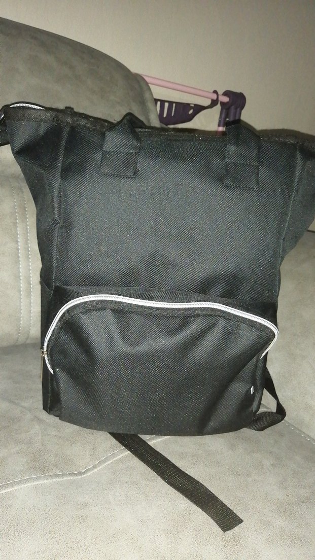 Önünde fermuarlı cep bulunan, sade desensiz siyah bebek çantası. Dayanıklı kulpları ve geniş ana bölmesi ile kullanışlıdır.