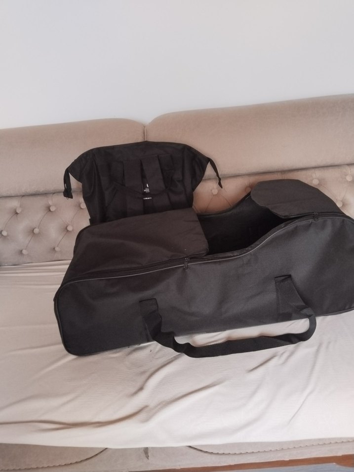 Çok bölmeli, dayanıklı malzemeden yapılmış, taşıması kolay siyah bebek çantası. çantanın arkasında İBB yazısı var arka kısma geliyor görünmüyor.