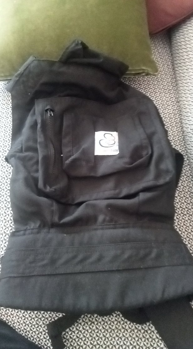 Ayarlanabilir askılı, ön cepli siyah bebek taşıyıcı. Bebeğinizi taşımak için rahat ve kullanışlıdır. çok az kullanıldi