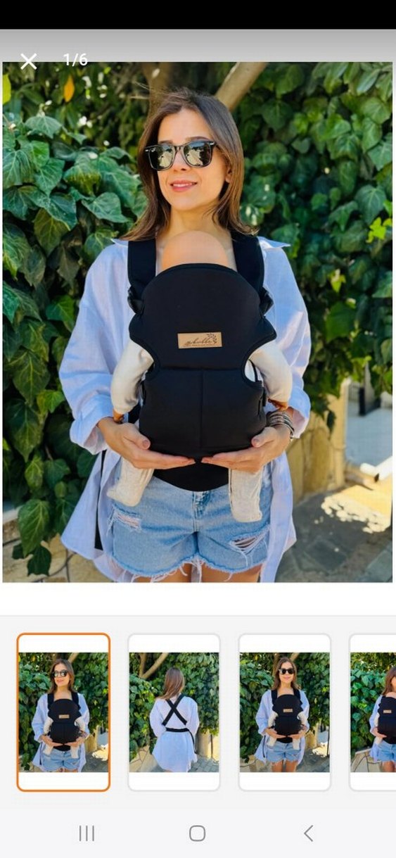Yumuşak dolgulu omuz askıları ve güvenli destekli siyah bebek kanguru taşıyıcı, bebeğinizi rahat taşımanızı sağlar.