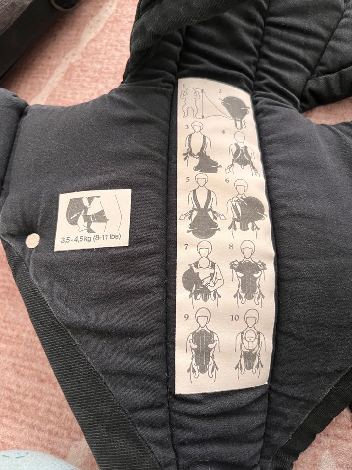 3,5-4,5 kg (8-11 lbs) ağırlığındaki bebekler için siyah bebek kanguru taşıyıcı, kullanım talimatları ile birlikte. BABYJÖRN MARKALIDIR YENİ GİBİDİR