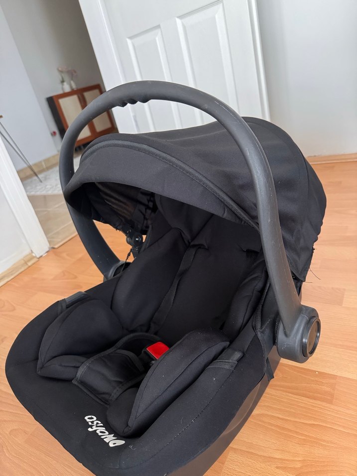 Siyah bebek oto koltuğu, sağlam tutma sapı ve yumuşak destek ile bebek güvenliği ve konforu sağlar. Kolay taşınabilir ve güvenli montaj yapılabilir. 2 ay kullanıldı