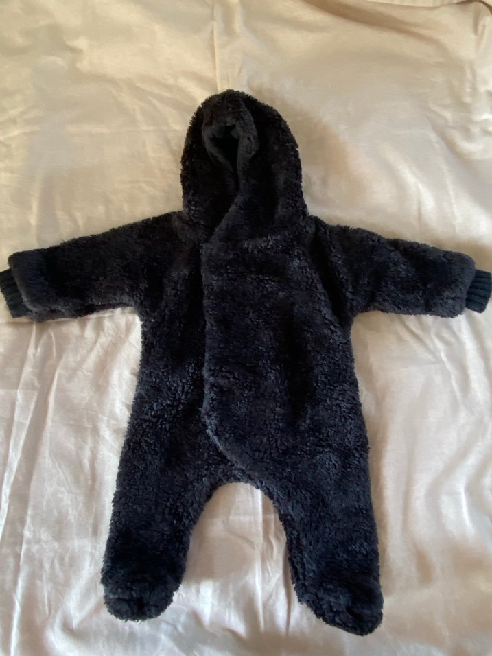 1+ in the family marka Siyah renkte, yumuşak ve sıcak kumaştan yapılmış, kürk detaylı kapüşonlu bebek tulumu. Soğuk hava için tam koruma sağlar. ❄️ en üst kapanma kısmında sadece bir düğmesi eksik ilikleme mevcut. Fiyat markaya göre çok uygun konuldu.