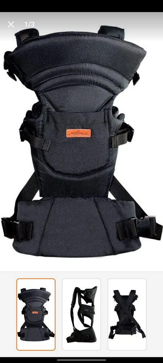 Ayarlanabilir kayışlara ve konfor için dolgulu desteğe sahip siyah bebek taşıyıcı kanguru. Bebekleri güvenle taşımak için uygundur.