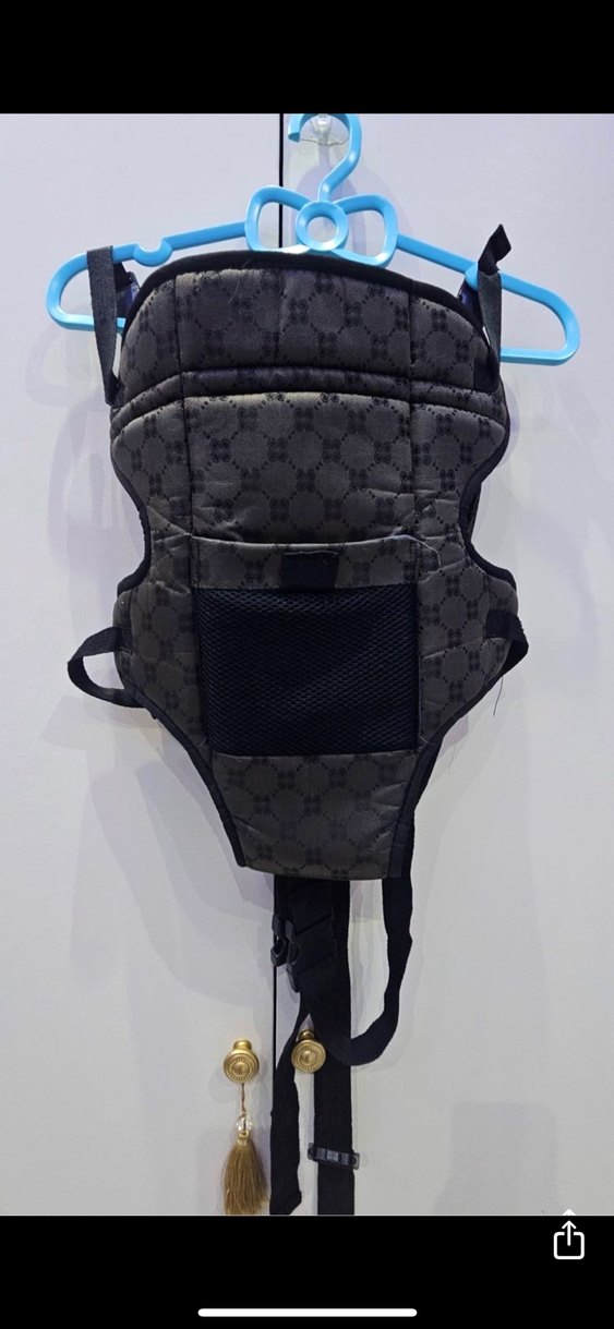 Koyu siyah renkte, ayarlanabilir askılı ve yastıklı destekli bebek taşıyıcıdır. Nefes alabilen file cebine sahiptir. YURT DIŞI ÜRÜN
