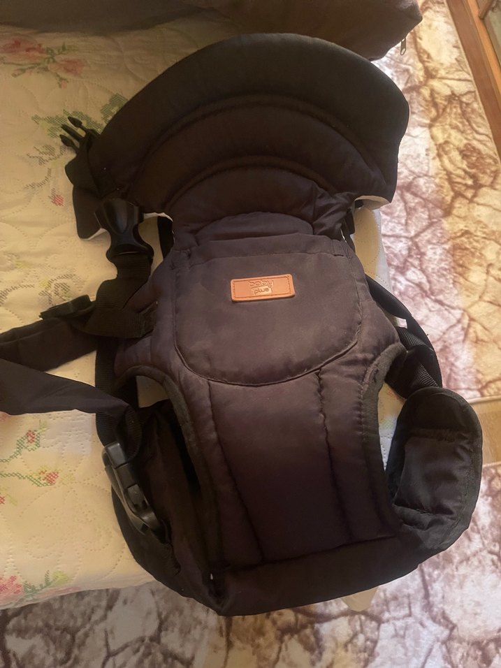 Siyah renkli, dolgulu askıları ve ergonomik tasarımı ile rahat taşıma sağlayan bebek taşıyıcı kanguru. Yeni doğan ve küçük çocuklar için uygundur.