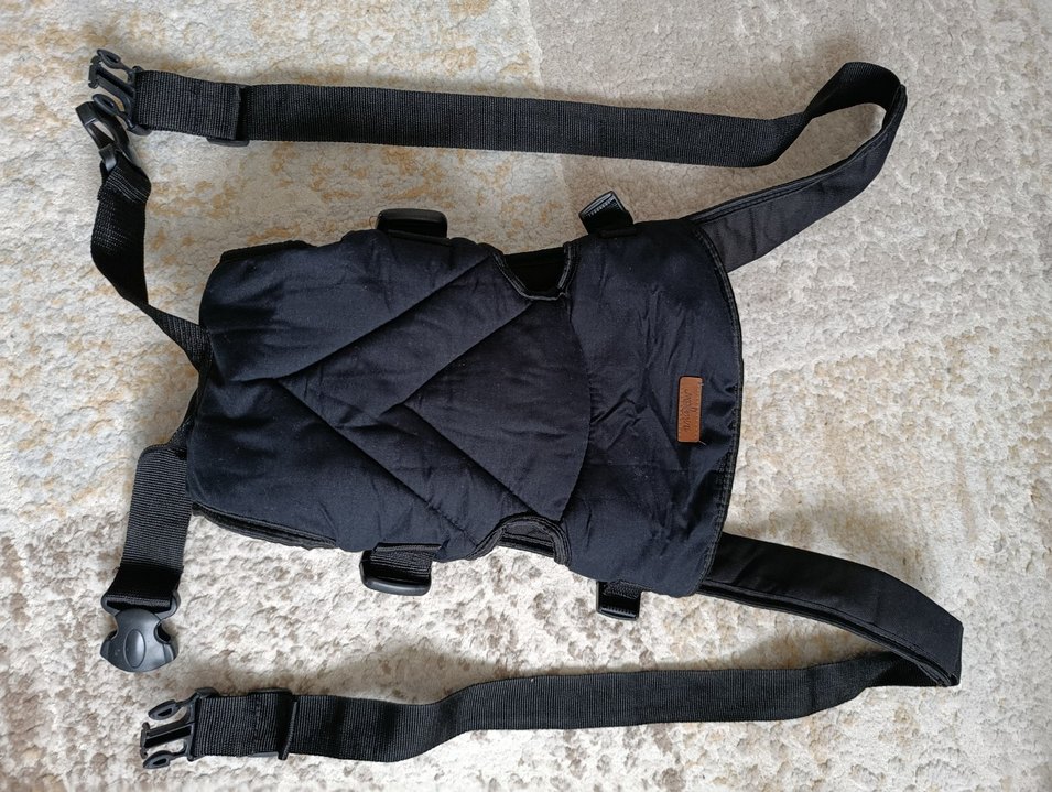 Ayarlanabilir kayışları ve yumuşak kumaşıyla siyah bebek taşıyıcı, bebeğinizi rahat ve güvenli taşımanızı sağlar. hiç kullanılmadı