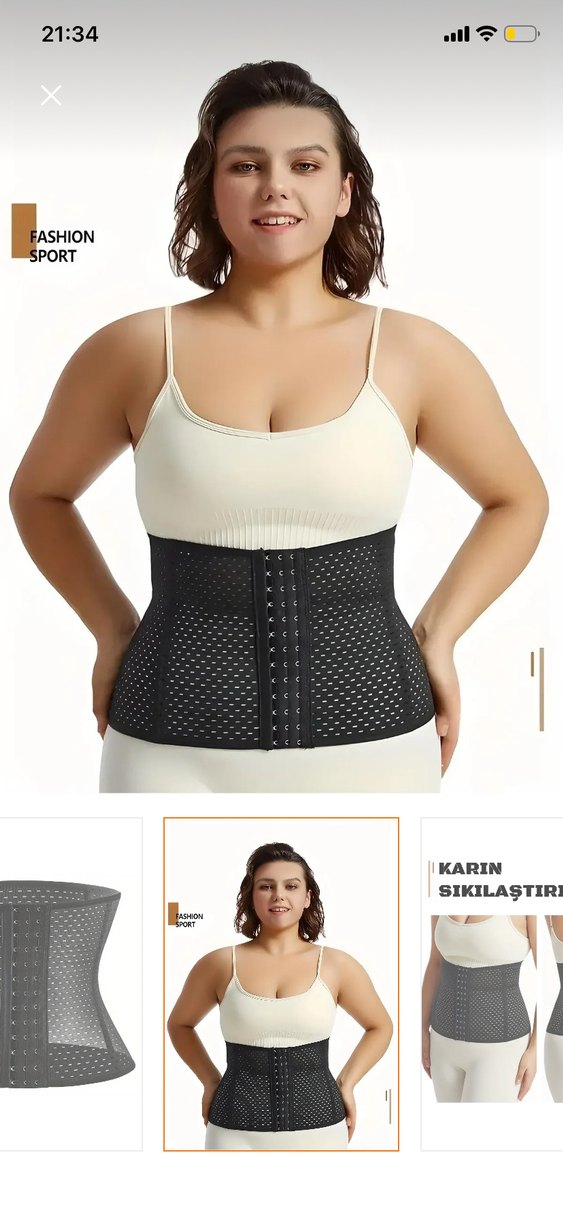 Önü çıtçıtlı, nefes alabilir kumaştan yapılmış, vücut sıkılaştırıcı siyah korse midi boyda ve dar kesimdir. L-XL hiç kullanılmadı