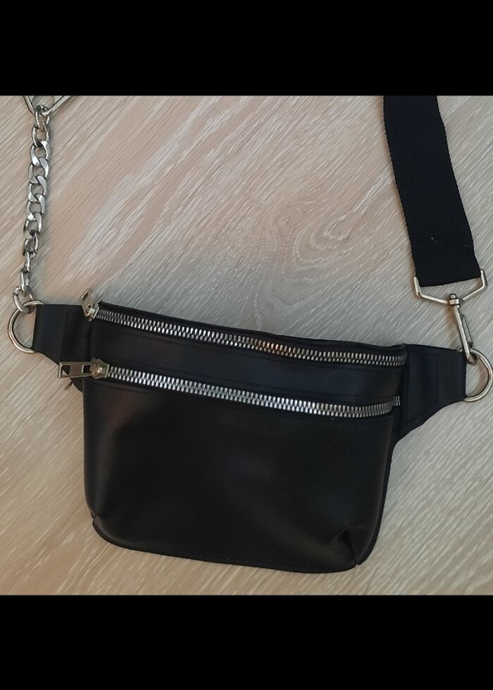 Siyah bel çantası Temiz ve yeni Zincir ipli bel cantasi