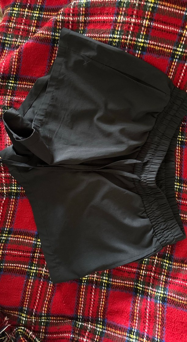 Siyah renk, bel detaylı.Sentetik kumaştan, kısa boyda, rahat ve dış mekân kullanımına uygun.