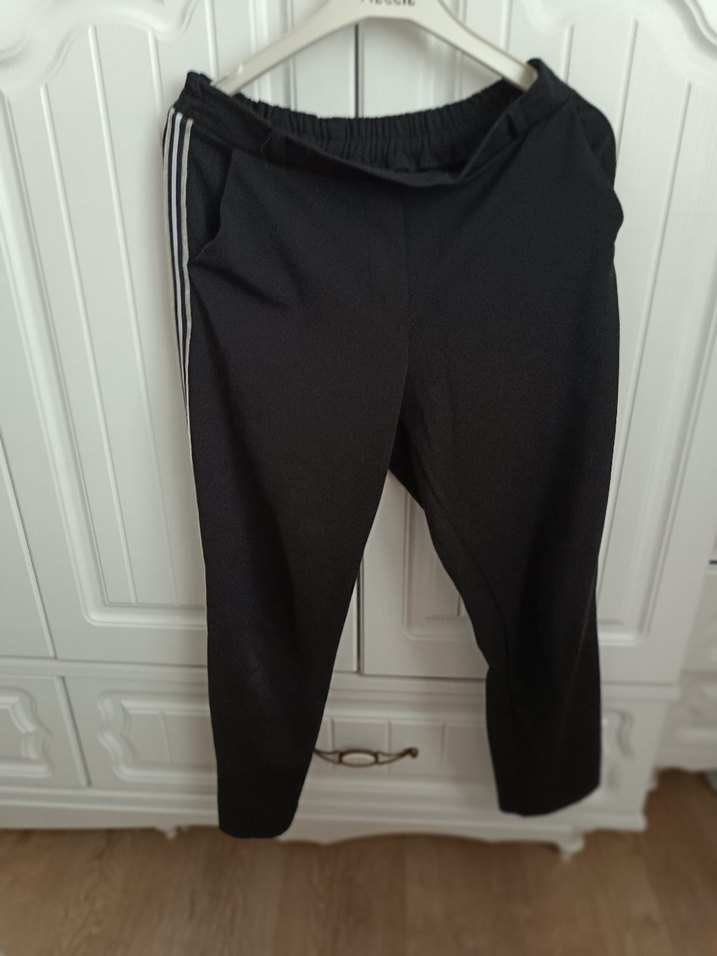 38.40.42 44 bedenler için uygun Siyah bel detaylı, midi boy, bol kesim kadın kumaş pantolon. Rahat sentetik kumaştan, spor ve günlük kullanıma uygun.